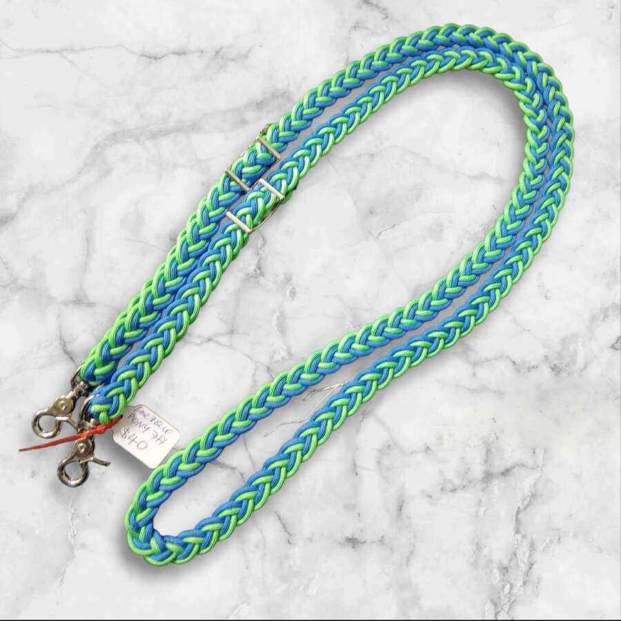 6ft pony reins lime and blue