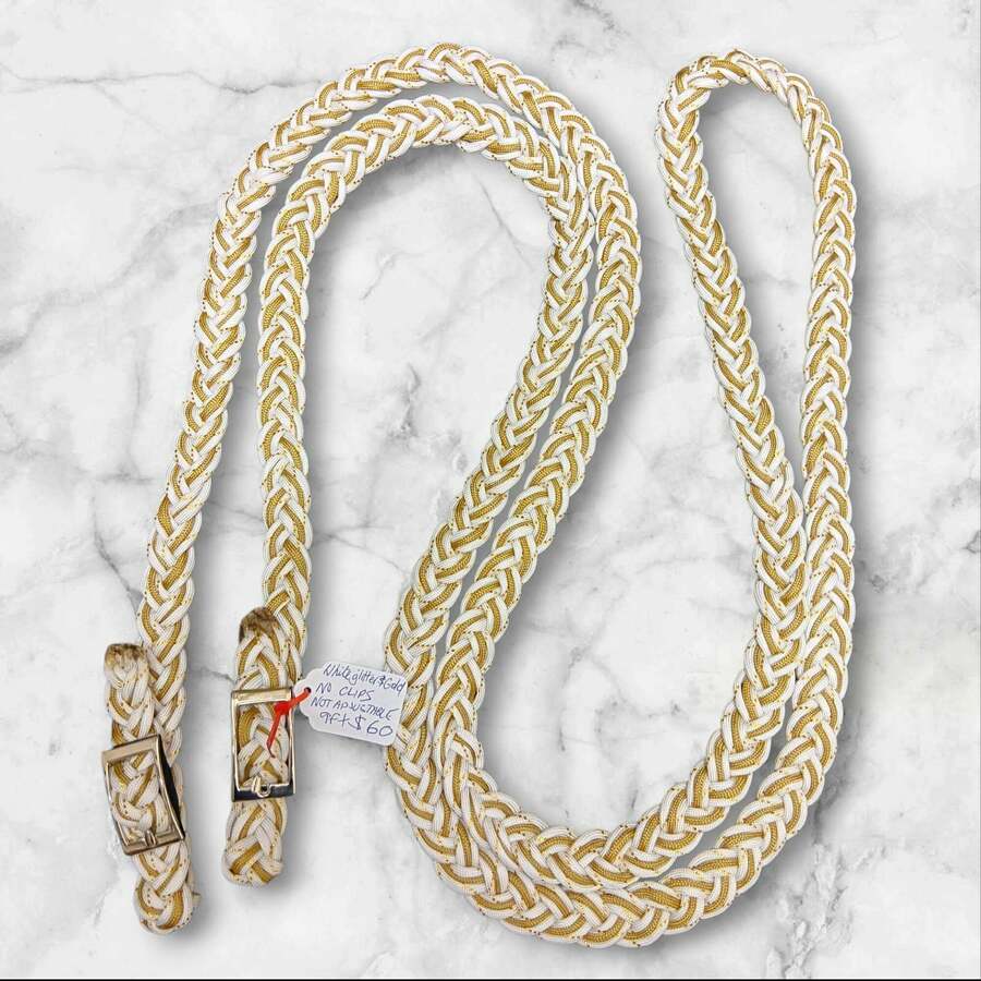 9ft White glitter and gold non adjustable reins no clips