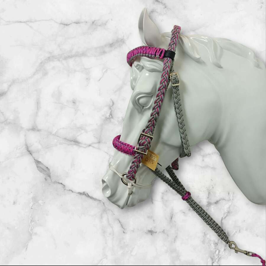 Premium Horse Headstall – Durable and Comfortable Fit, Pink and blue braided bridle cob/full.
