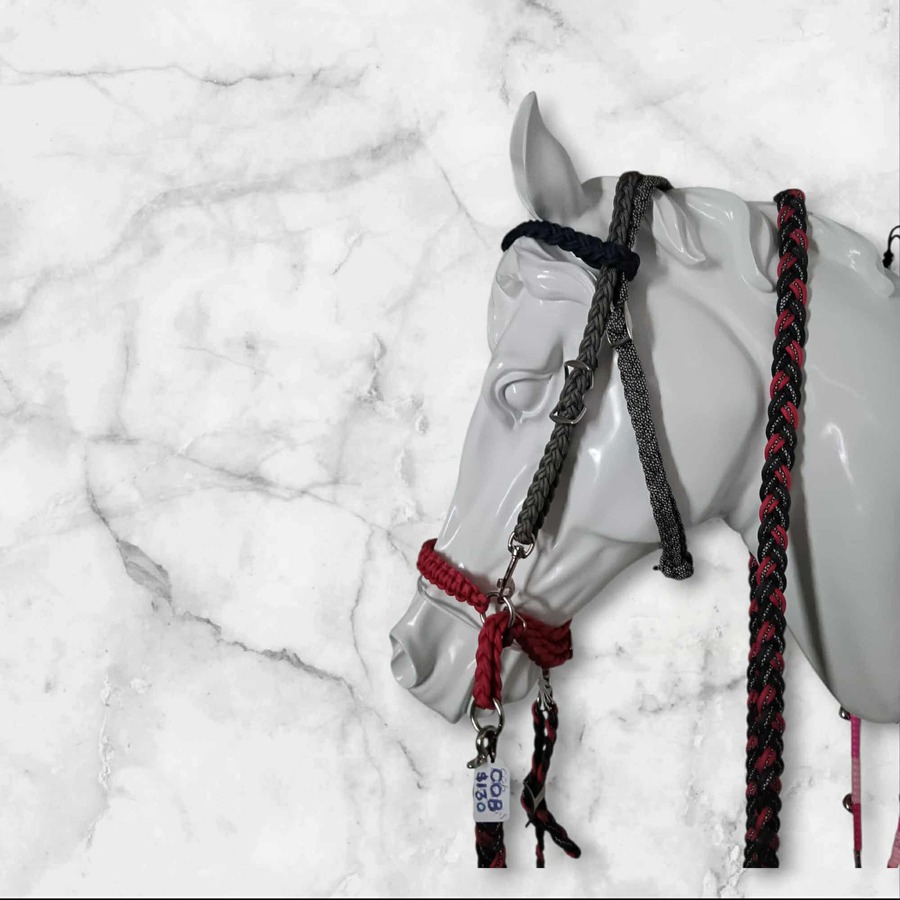 Cob sized braided Bitless bridle with matching 9ft adjustable reins.
