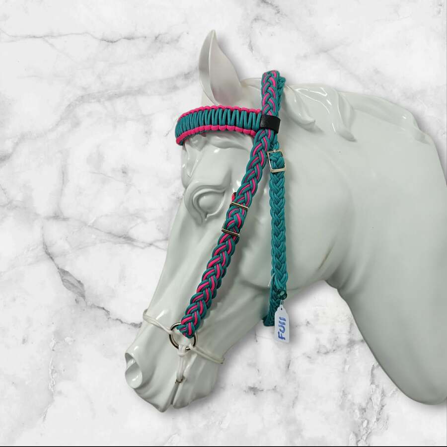 Premium Horse Headstall – Durable and Comfortable Fit, Pink and blue braided bridle cob/full.