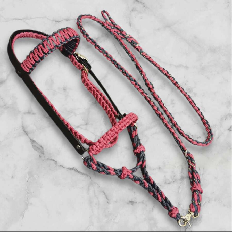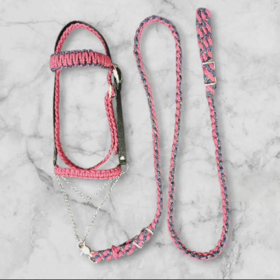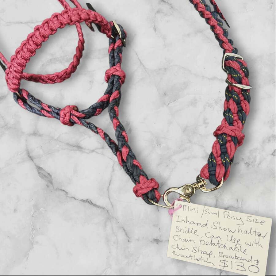 Mini/sml pony size .show quality, Burgundy and navy,leather inhand show halter with matching 5.5ft lead. Removable chin strap,browband and throatlatch. Can be used with a chain (not incl)