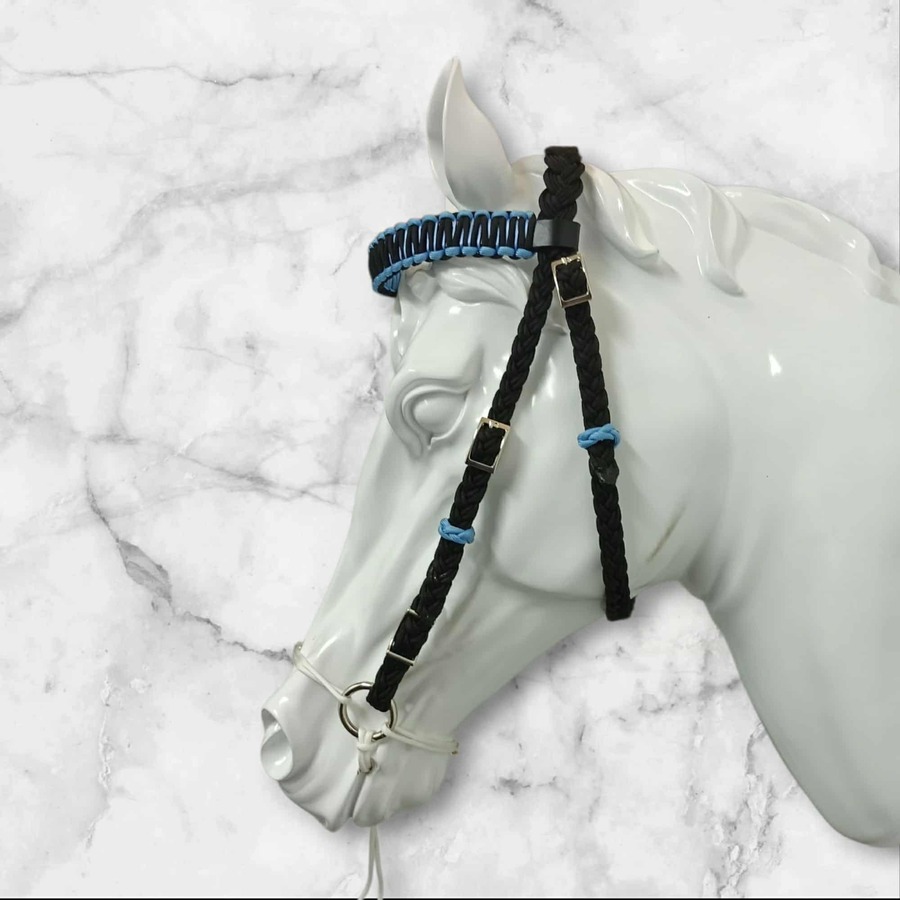 Premium Horse Headstall – Durable and Comfortable Fit, Pink and blue braided bridle cob/full.