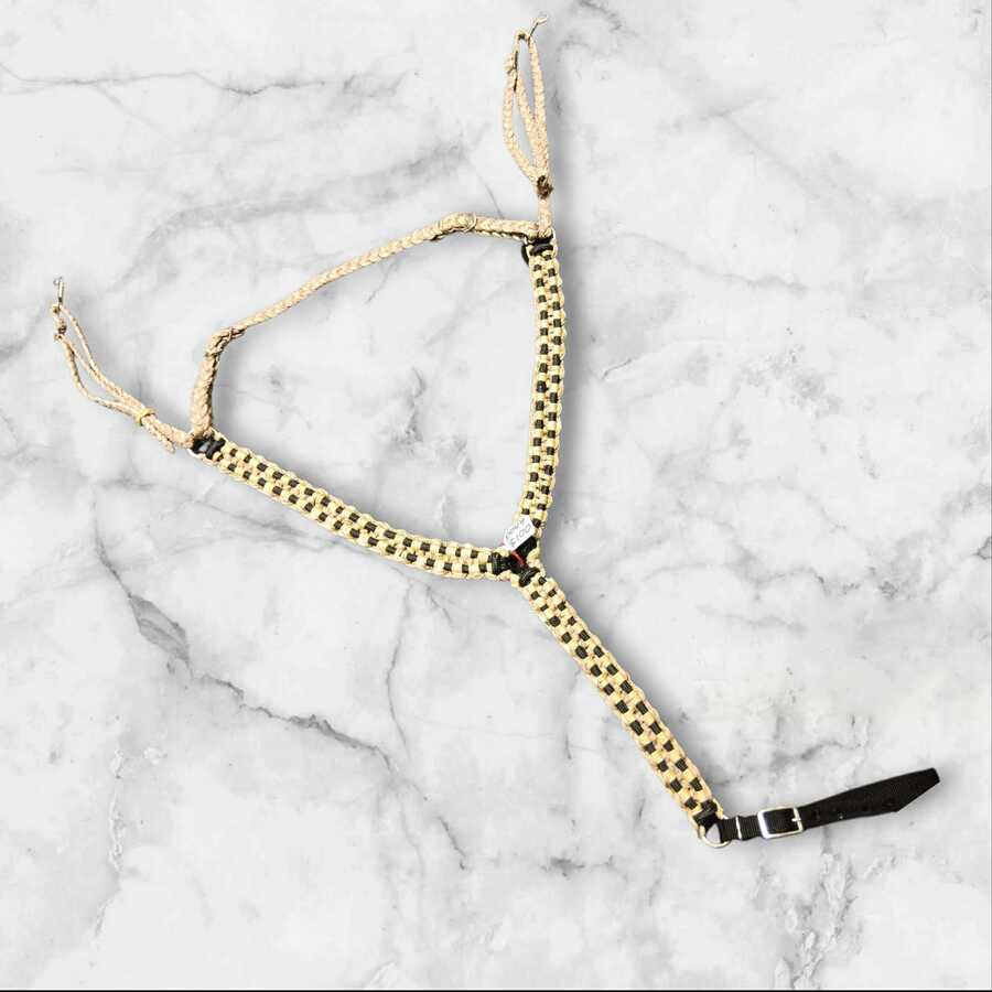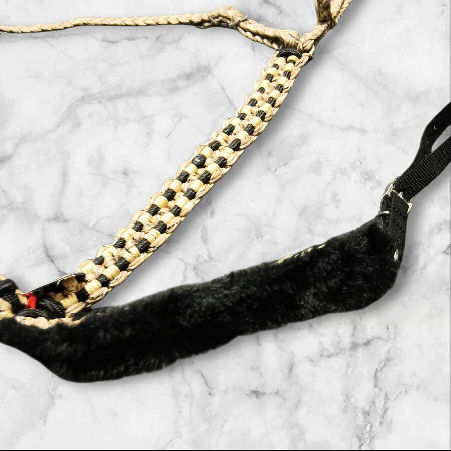 Pony size gold and sand camo breastplate with blk soft fluffy lining